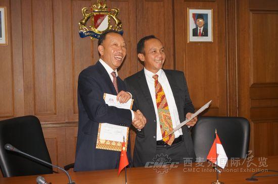 图为机械汽车展览联合会与印度尼西亚工商会签订合作备忘录