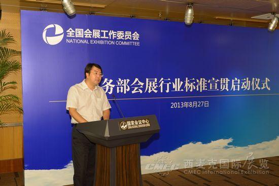 为进一步规范我国会展行业的秩序,推动会展行业的健康发展,加强品牌展览会建设,加快国内会展业与国际接轨的进程,由商务部制定的会展行业标准已于2013年7月1日起正式实施。为更好的落实这项工作,8月27日在国家会议中心举行了商务部会展行业标准宣贯启动仪式,来自会展行业主管部门的领导、行业专家、会展行业代表及媒体朋友100余人参加了此次活动。我司副总经理杨明作为全国会展工作委员会出国展览部的主任不仅参与了相关标准的制定并就其内容及起草过程做了简要介绍。
