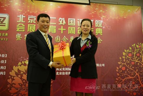张力总经理作为重要嘉宾做了发言,她指出,“产教结合、校企合作”模式既能发挥学校和企业的各自优势,又能共同培养社会与市场需要的人才,是高校与企业双赢的模式之一。今年是二外会展专业建设十周年,也是西麦克展览业务发展55周年,西麦克的发展依靠源源不断的人才输入,西麦克展览公司提供了一个广阔的发展平台,欢迎二外会展专业的精英加入我们,一起携手书写会展行业新的辉煌!最后祝二外会展系的明天更美好!张总代表西麦克展览公司向二外会展研究中心赠送了贺礼,二外方面向我方赠送了会展书籍。