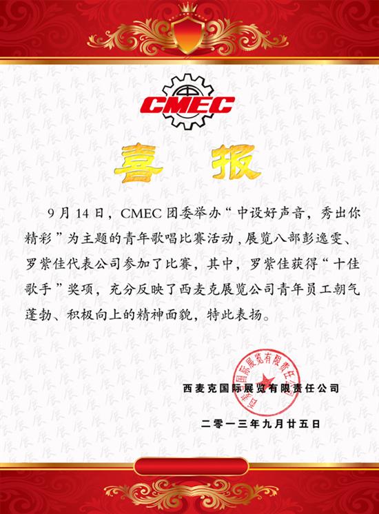 西麦克展览公司员工获中设好声音十佳歌手奖项