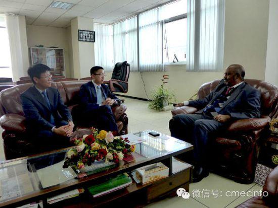 考察工作小组随同商务部贸发局副局长韩圣健一行拜访了埃塞工业部国务部长西塞和塔德西,并与埃塞商会和亚的斯商会的相关负责人进行了具体的工作交流,取得了亚的斯商会协助邀请会员企业及媒体参加CMEC品牌推介活动的承诺与支持,还现场考察了展览场地千禧年展览中心、会议室及相关设施,与展馆方、搭建方进行了具体细致的沟通,确认了CMEC展台特装方案及会议日程的可行性,还在CMEC成套六部驻埃塞代表处的陪同下拜访了中国驻埃塞使馆经商处,汇报了品牌展宣活动的计划、方案、进程以及需要经商处协助支持的具体工作,得到了经商处的肯定与支持。