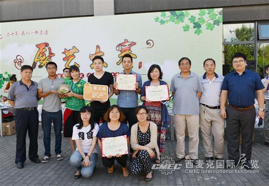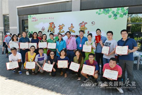 上午10时,一场别开生面的厨艺大赛开始了。办公室、财务部、信息部、展服部组成第一联队;业务四、五、十二部组成第二联队;业务二、七、展览工程部、物业部组成第三联队;业务三、六部组成第四联队;业务一、八、九部组成第五联队。五个联队分别准备四道菜,由5个专业评审及大众评委根据菜品的色、香、味、形和营养进行现场打分,最终评出最佳厨师及最佳小组。