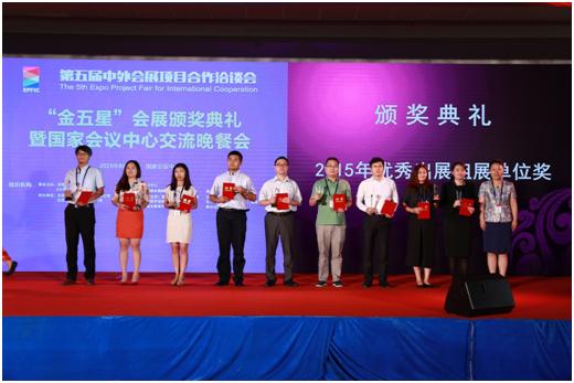 中外会展项目合作洽谈会暨“金五星”会展颁奖盛典于2015年8月4日在北京国家会议中心圆满落下帷幕。在此极具行业权威的年度盛会上,在会展业界同仁的共同见证下,西麦克国际展览有限责任公司再度斩获“金五星优秀出展组展单位”大奖。