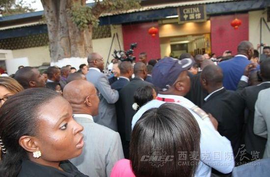 图为高克祥大使陪同罗安达省长等安政府高官出席中国馆日庆典活动